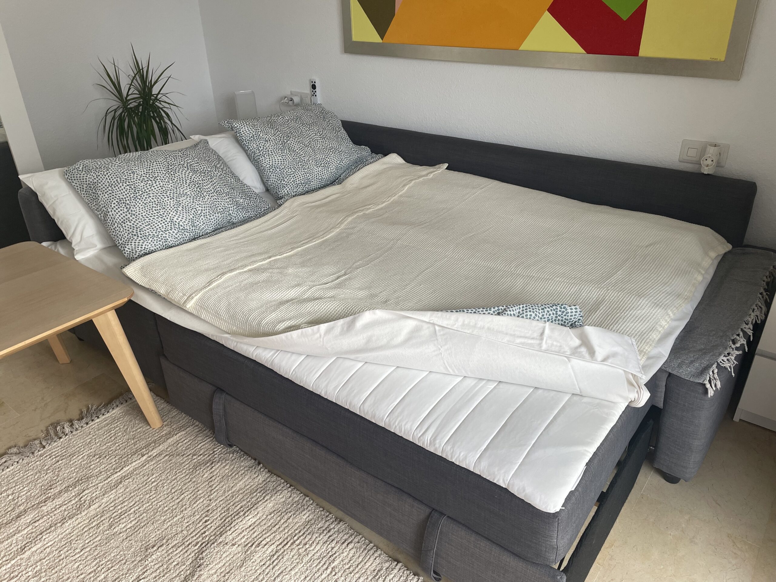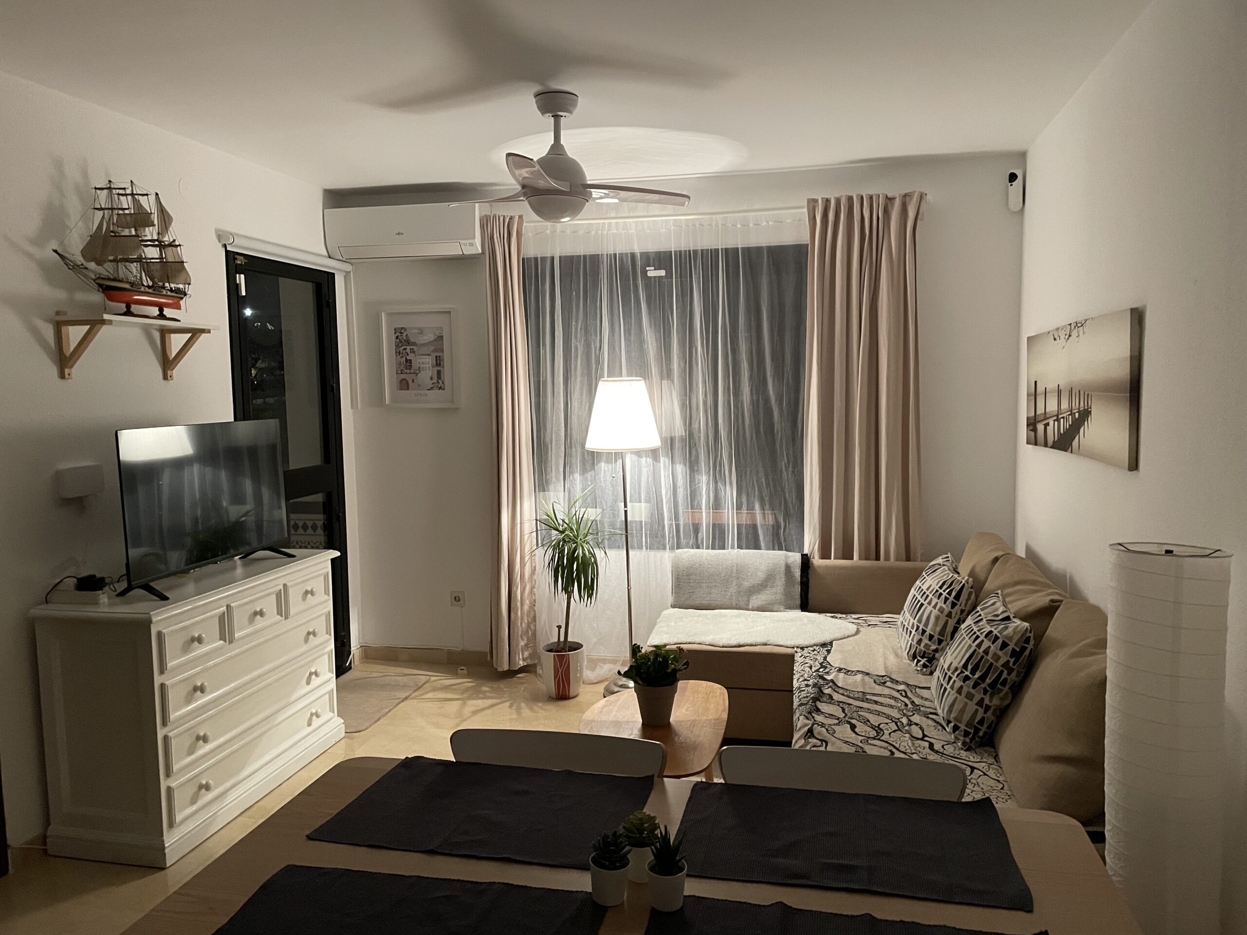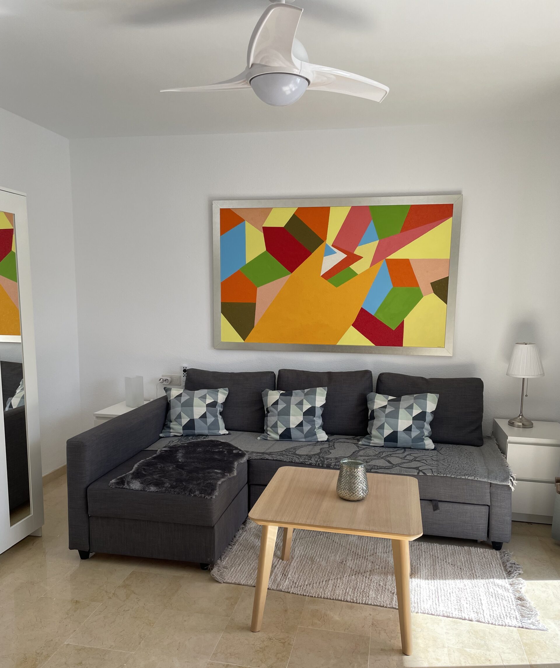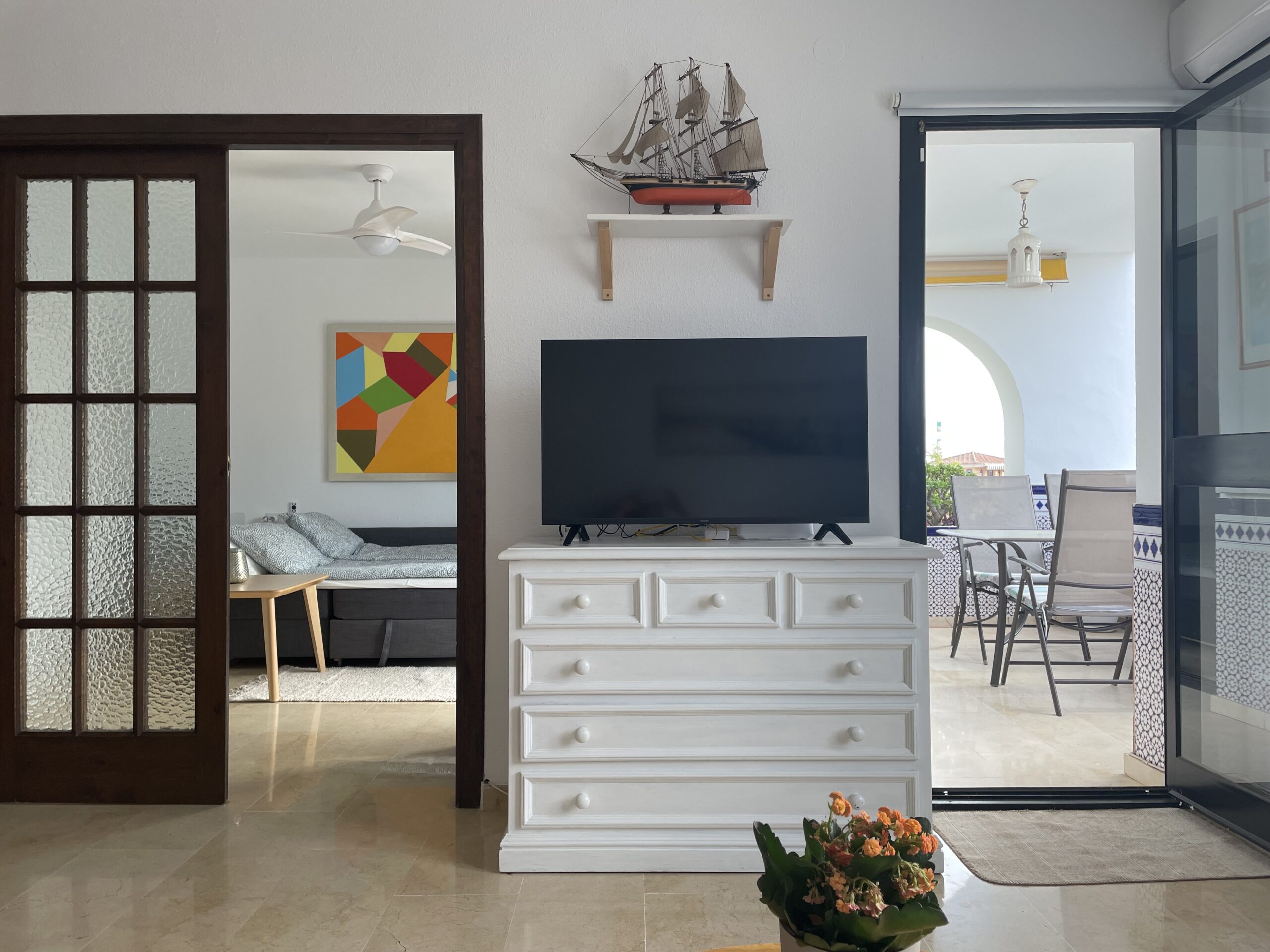 Apartment Photos GeneralGated ResidencyLiving RoomBedroom 1Bedroom 2KitchenBathroomTerraceSwimming PoolEnclosed GarageParking Calle Carril de Contreras 23 1 floor, no elevator 56 m2 Max 4 people WIFI 300 Mb Free parking within the gated community or along the street in front of the residency Enclosed garage within the gated residency Quiet one-way street with the parking lane alongside No pets No smoking Not suitable for children under 7 years old No group of young people under 25 years old Main car entrance (Calle Carril de Contreras) Side entrance (Calle Carril de Contreras) Back entrance (Av. Gandhi) – 13-15 min walk to train station, 15 min to Bonanza Square, 5 min to Parque de La Paloma Main car entrance Side entrance Back Entrance from Av. Gandhi Main car entrance Side entrance Back Entrance from Av. Gandhi Sofa bed Smart TV Dining table with chairs Coffee table Ceiling Fan Airconditioning (cold/hot) West facing window & south facing single terrace door Double bed 160 cm 2 bedside tables with lamps Desk with a chair Build-in wardrobe Ceiling Fan Portable heater Portable fan Ironing Board and Iron Shopping bag on wheels Bed linen and towels Beach towels South facing window Sofa bed (140 cm) 2 bedside tables with lamps Coffee table Wardrobe Ceiling Fan TV Desk with the chair Shelves Cabinet with the clothes dryer rack West facing double terrace door Induction cooker Oven Microwave Extractor hood Fridge & Freezer Dishwasher Dolce Gusto coffee maker Kettle Toaster Cuttleries Spacious walk-in shower Washbasin Toilet Shaving mirror Hairdryer Infrared heater Washing machine Hoover Tall cabinet Soap, shampoo, conditioner, shower gel Towels Covered 9 m2 South & west facing View towards the sea, the garden with the swimming pool and the mountains Table with 4 chairs (the backrest can be folded down) Storage box with padded chair cushions Clothes drying wall rack Marble shelf Open from 1 June untill 30 September from 11:00 h to 21:00 h Communal: 2 plastic deckchairs and 4 plastic chairs Enclosed behind 2 doors Garage entrance on the second picture is 170 cm tall and 215 cm wide Limited number of free parking places withing the gated Residency First comes, first gets the place Another possibility is the parking lane along the one-way road in front of the Residency